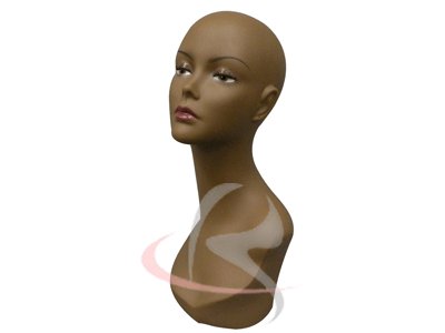 | MD-TinaB3, African Female dark skin tone mannequin head. Beautiful makeup. Height: from top to bottom 18". Circumference: 21". Color: Dark skin tone. All other accessories are not included. ...Read more |